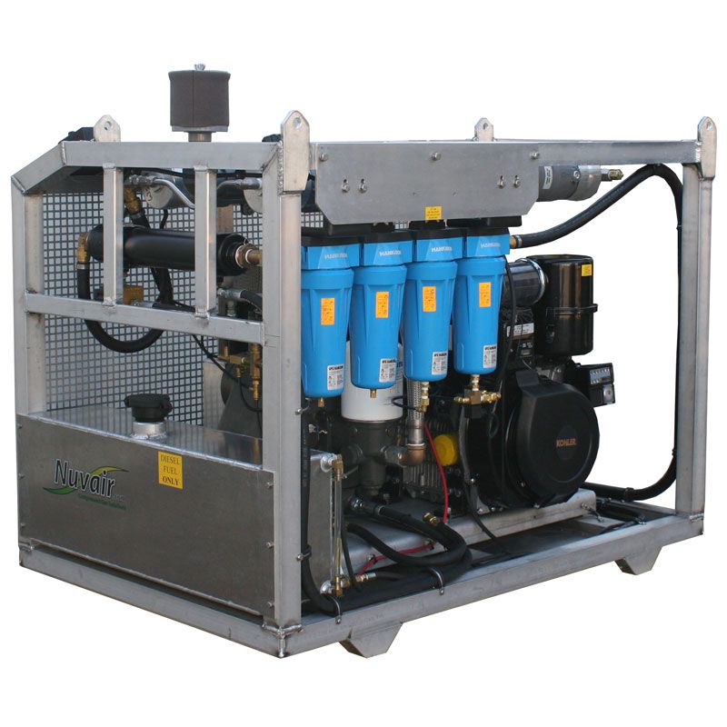 Nuvair is a worldwide leader in supplying offshore and inland air/nitrox compressors to the commercial diving industry. We have small turnkey solutions and can custom build designs for your boat, barge or shop that meet your specific needs. Our container packages for larger operations can incorporate low pressure, high pressure and nitrox compressors into a connex container that can be moved from job to job. Big or small, Nuvair is ready to take on your commercial diving compressor needs.