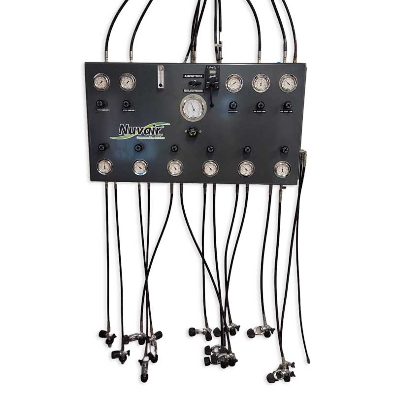 Nuvair fill panels (gas distribution panels) and fill blocks are used by small dives shops and big dive operators around the world. Our online store features standard panels and blocks available for immediate purchase. If you don't find a fill panel or fill block that meets your exact requirements, please contact us with your custom-build specifications. We will be happy to design and manufacture a fill panel or block for you. Every panel and block we sell is manufactured at our California production facility.