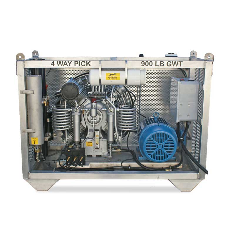 Nuvair sells a range of high pressure (HP) breathing air compressors for filling scuba tanks from 3.4 to 27 SCFM (96-764 L/min) at up to 7000 psi (482 bar). Our high pressure compressors can be powered by gas, diesel or electricity and are available in a wide variety of configurations. Compressors categories include:
