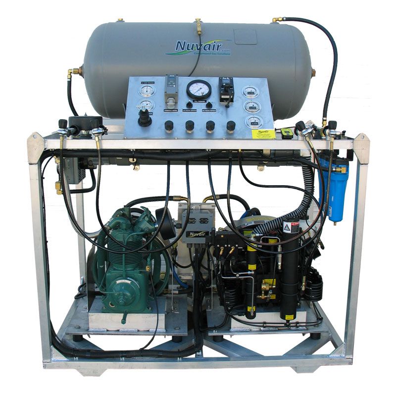 Our innovative low-pressure and high-pressure hydraulic nitrox compressor package leverages existing hydraulic pumps aboard commercial vessels or offshore installations to power this heavy duty nitrox generator. As configured with two compressors, this money-saving system can deliver 10 CFM of up to 40% nitrox at 3600 psi (283 L/min at 250 bar) or 23 CFM of air at 4500 psi (651 L/min at 310 bar).