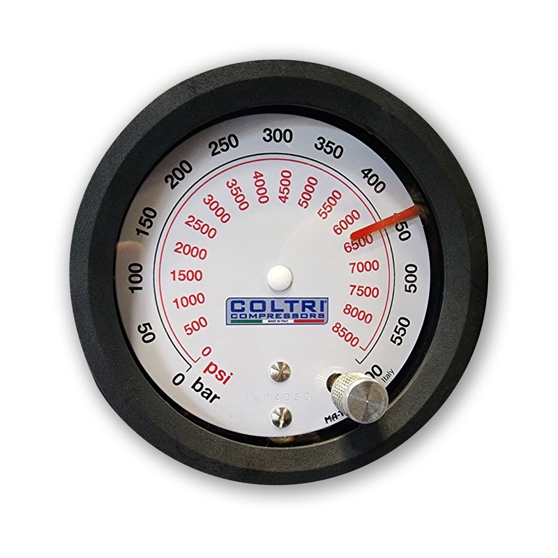 Liquid-filled, gas-filled, and digitial pressure gauges from –30 in.Hg (–100 kPa) to 10,000 psi (689 bar), dial-a-pressure auto-stop/auto-restart gauges, flow meters, temperature gauges, gauges ready for oxygen service ("oxygen clean"), and tachometer/hour meters for gas and diesel engines, Nuvair carries a wide range of gauges and meters for your compressed gas needs.